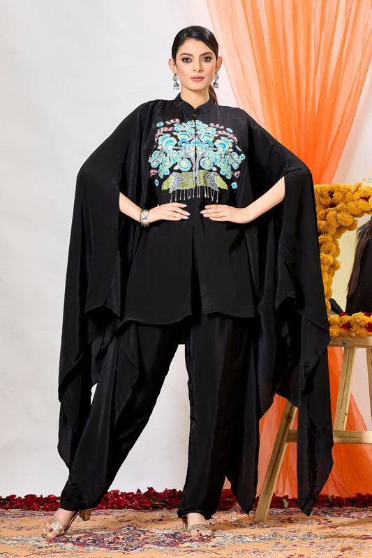 SummerFalling-Black Embroidered Crepe Silk Co-Ord Set