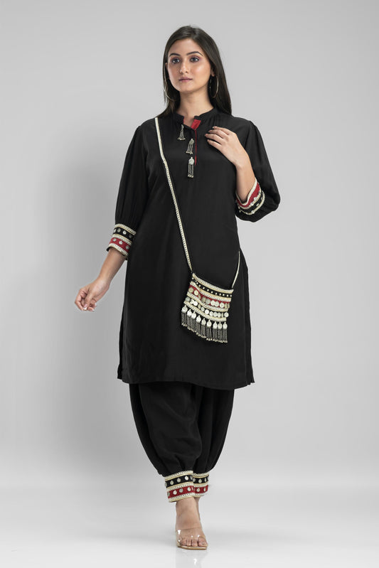 SummerFalling-Black Embroidered Muslin Silk Patiala Pants Set