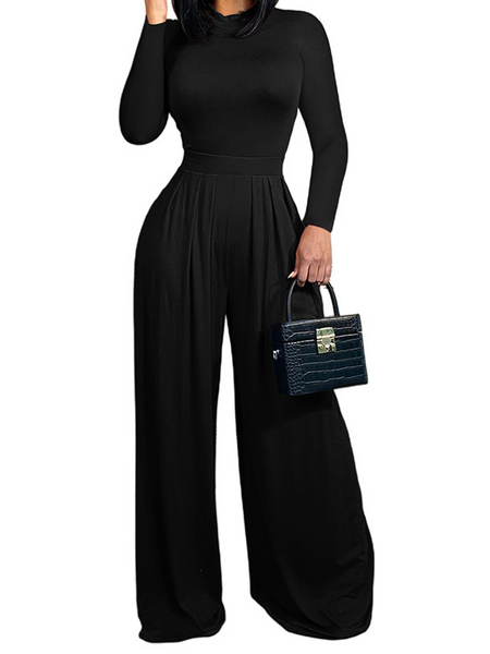 SummerFalling-Women's Long-sleeved Wide-leg Pants Pure Color Two-piece Set