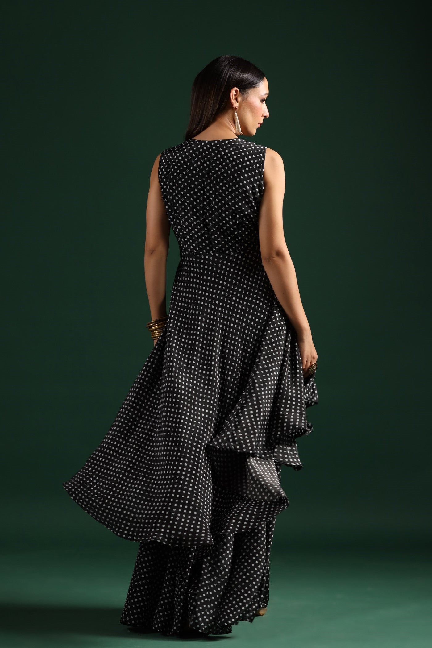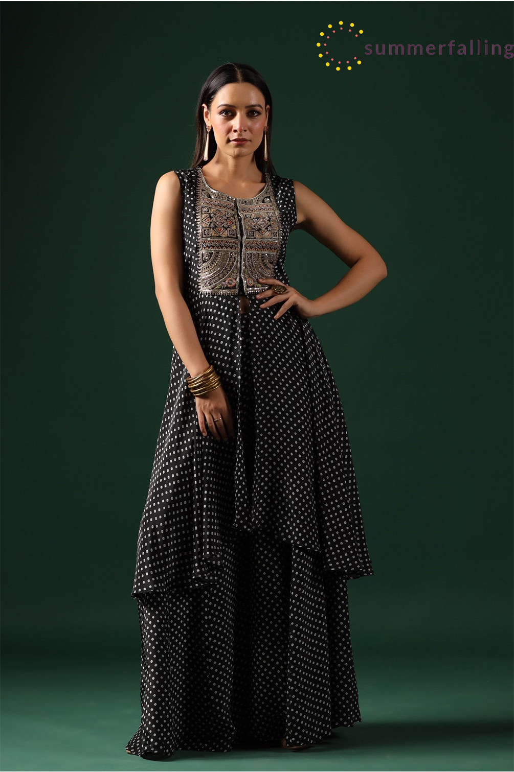 SummerFalling-Black Bandhani Embroidered Tunic & Palazzo