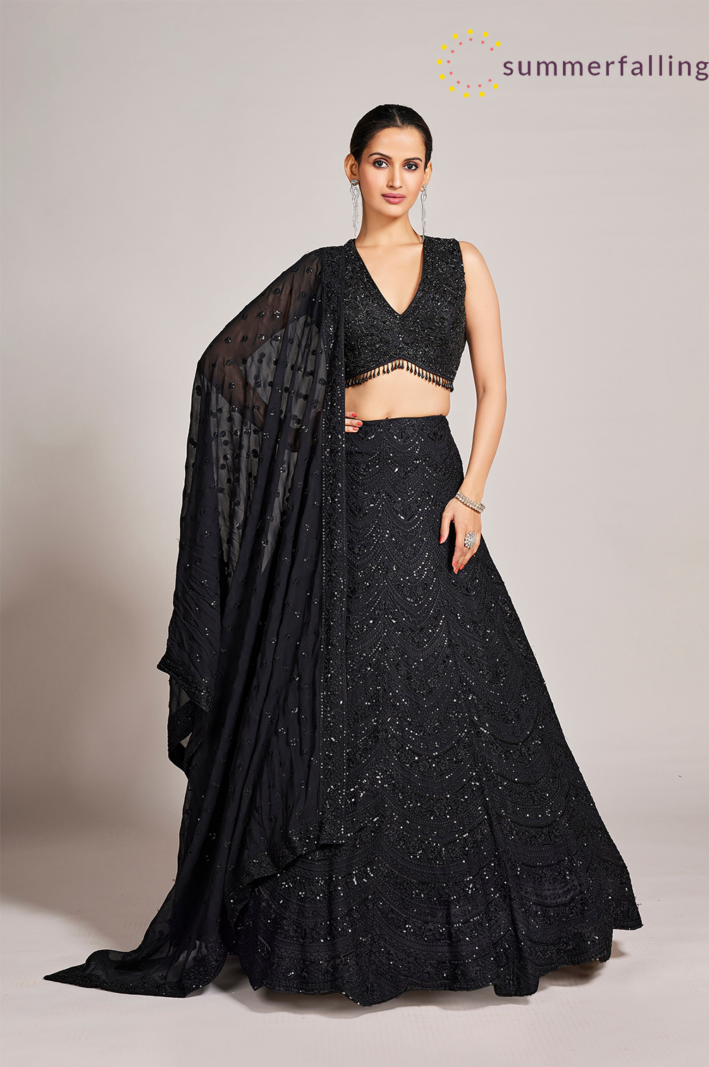 SummerFalling-Black Embellished Premium Georgette Silk Lehenga Set