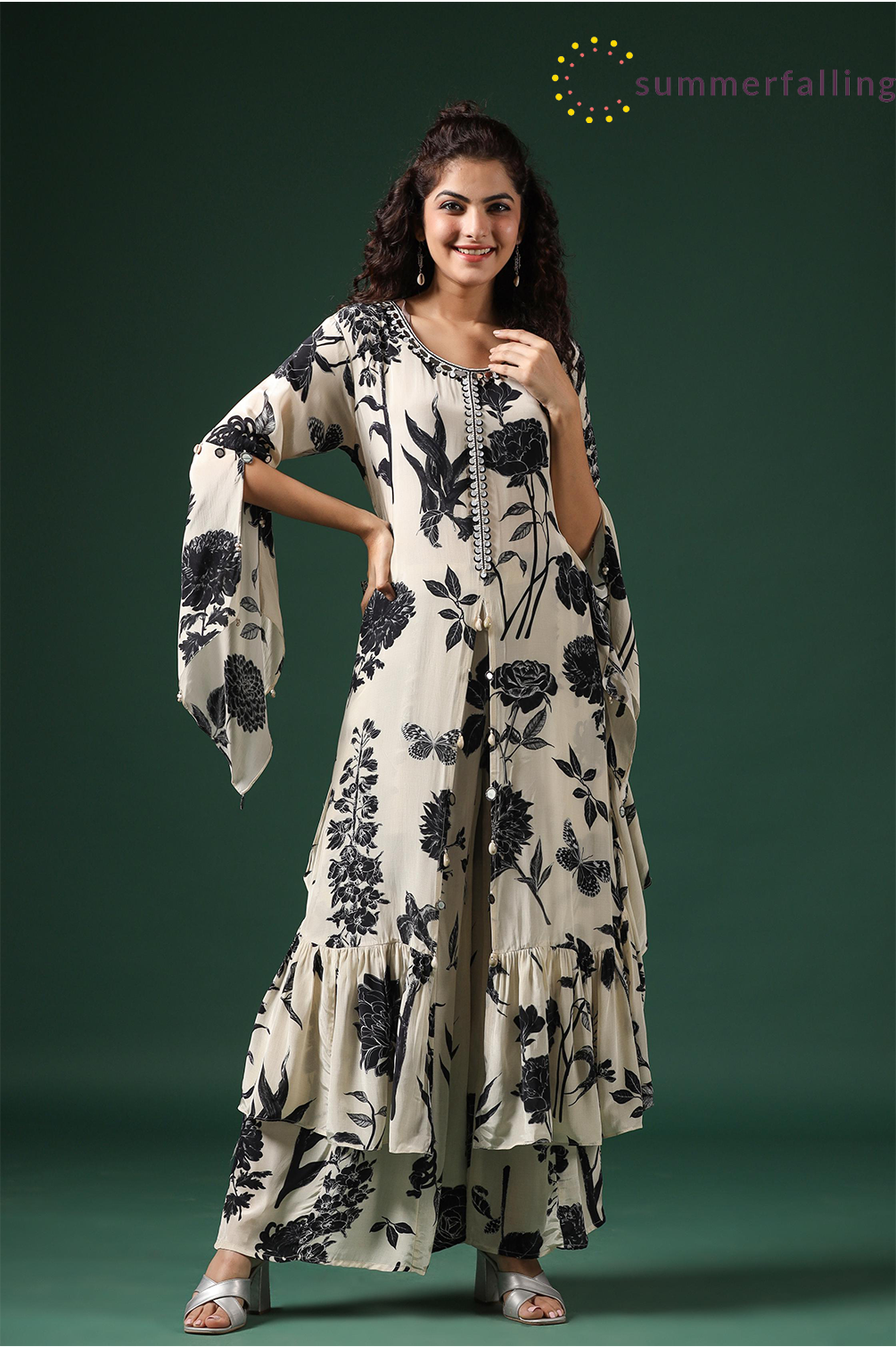 SummerFalling-Black & White Digital Printed Muslin Silk Palazzo Set