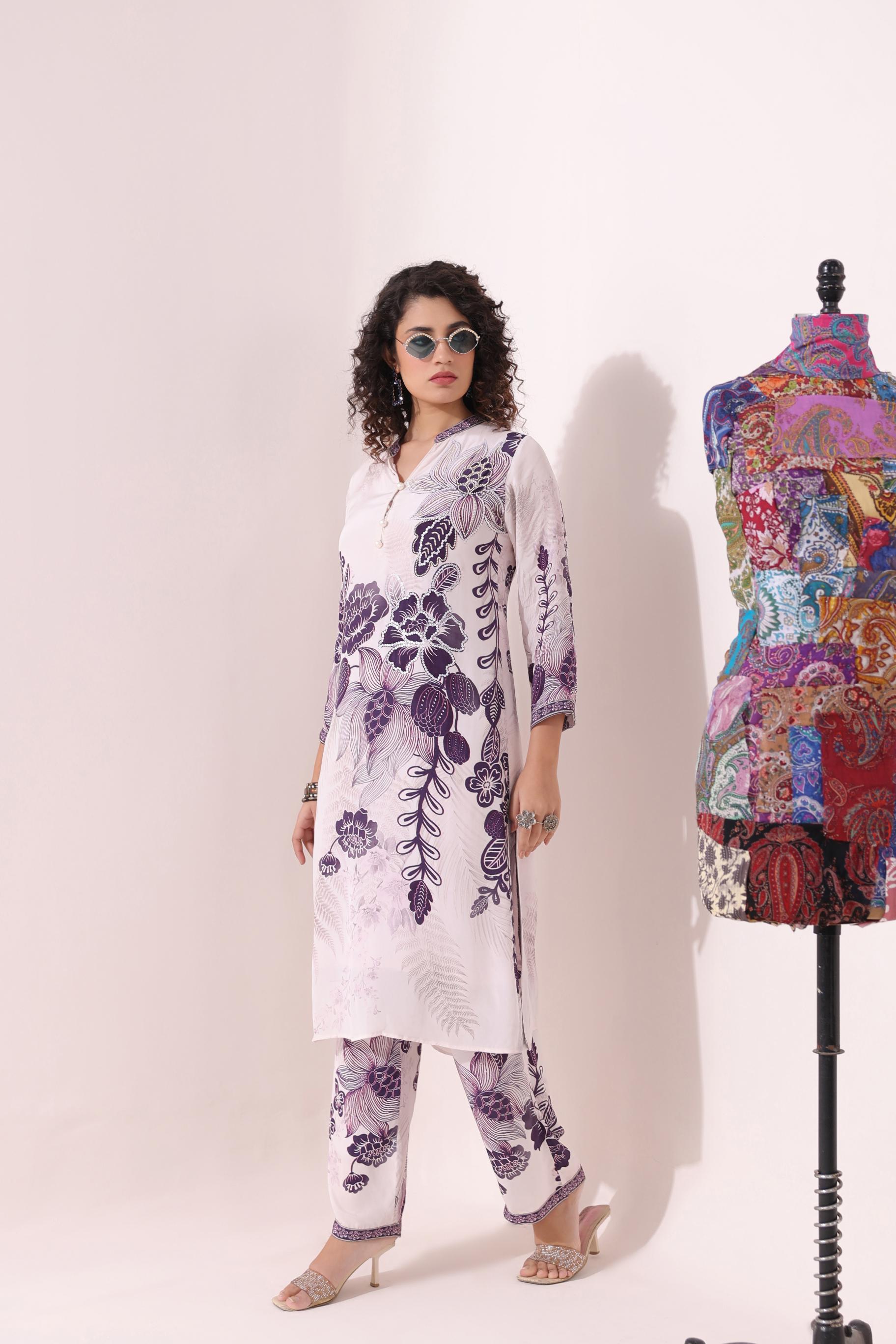 This stunning set features a classic black and white floral print on a comfortable, stylish kurti and matching pants. Perfect for a summer day out, this set will keep you looking and feeling cool and fashionable. Made with quality materials, this set is a must-have in your wardrobe.