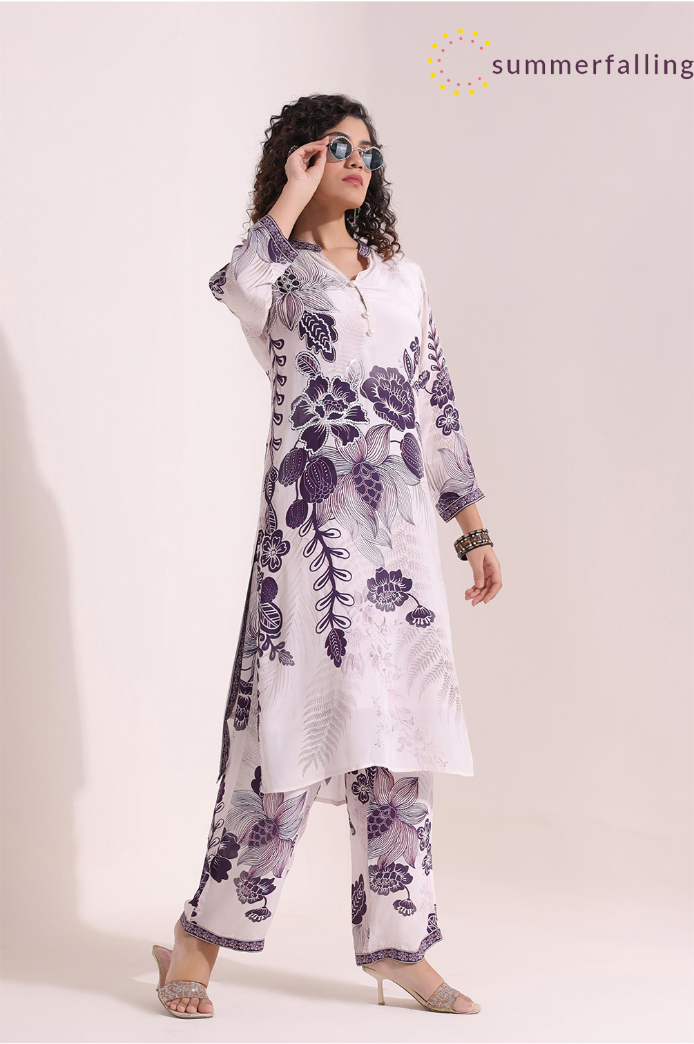 SummerFalling-Black & White Floral Printed Kurti And Pants Set
